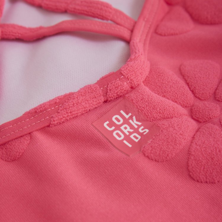 Яркий купальник для девочки. Прочный непрозрачный материал, который быстро сохнет.