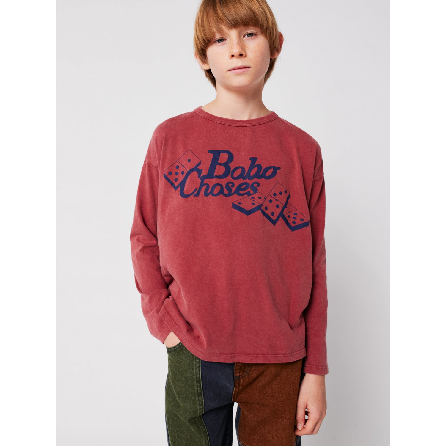 Хлопковый лонгслив с принтом на груди. Свободный крой и круглый вырез.