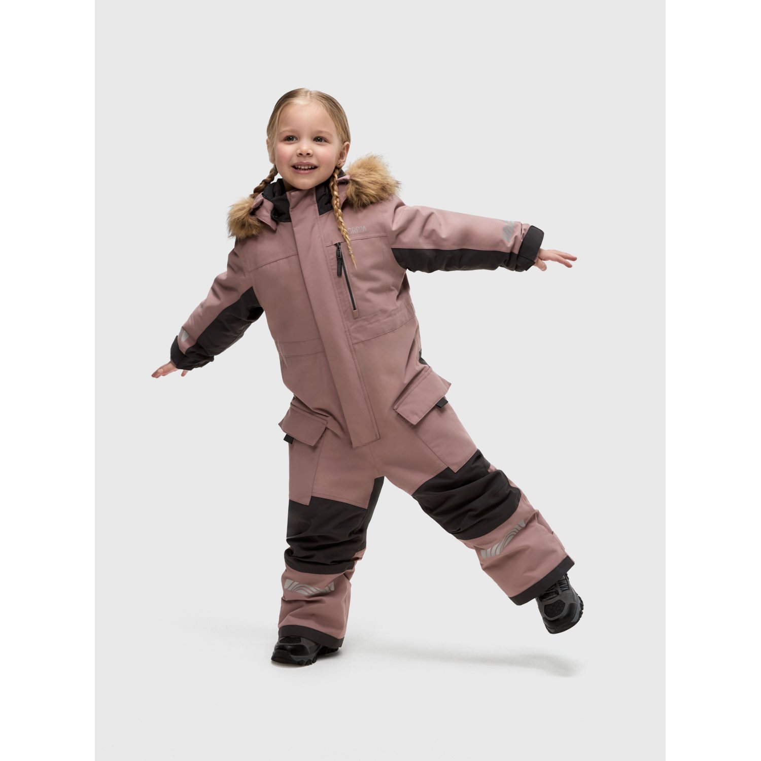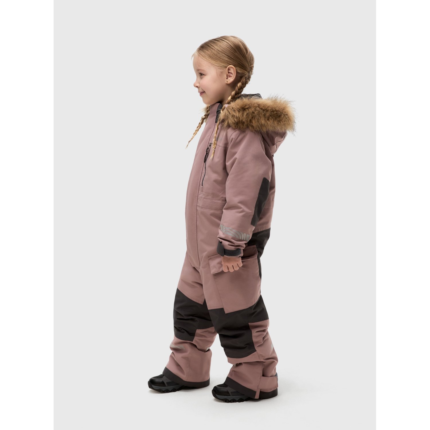 Дополнительное утепление в зоне сидения, прочная мембранная ткань, качественная фурнитура и регулируемые детали делают эту модель любимой зимней вещью для ребенка.