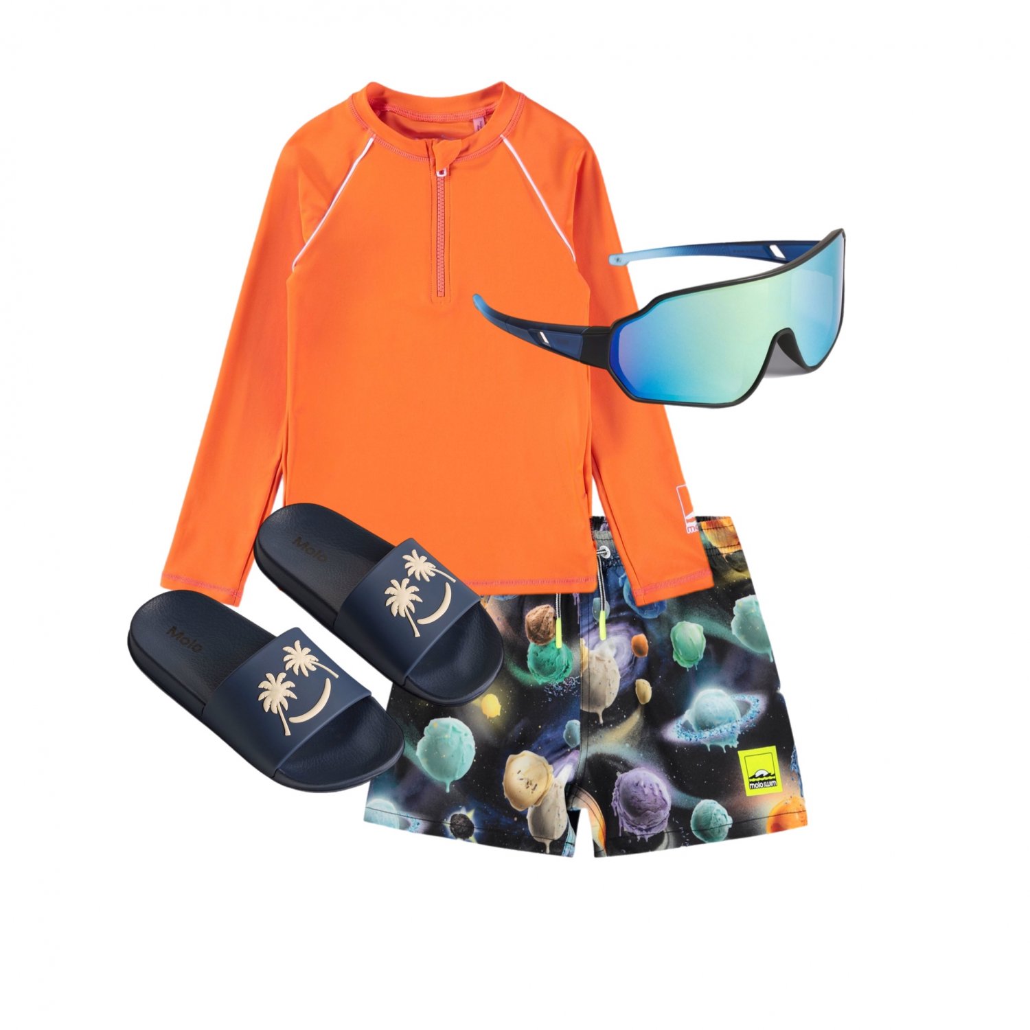 Спортивные плавательные шорты синего цвета для активных детей, изготовленные из переработанного полиэстера с защитой от УФ-излучения UV50+. Шорты имеют свободный крой, длину до середины бедра, эластичный пояс со шнурком, мягкую внутреннюю сетчатую подкладку и практичный задний карман.
