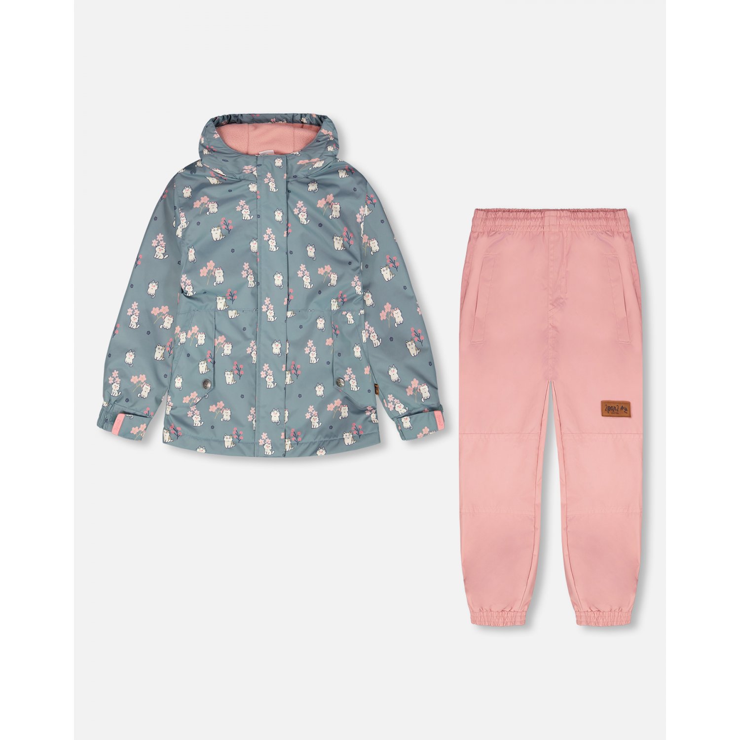 Водонепроницаемый комплект состоит из куртки с капюшоном на подкладке из полярного флиса, с застежкой-молнией спереди, ветрозащитной планкой, эластичными манжетами с регулируемыми застежками и светоотражающими элементами. Брюки с эластичной резинкой на талии и эластичными манжетами, светоотражающими лентами и усиленными коленями для защиты от износа. Ткань верха обработана долговечным и экологичным защитным водоотталкивающим составом.