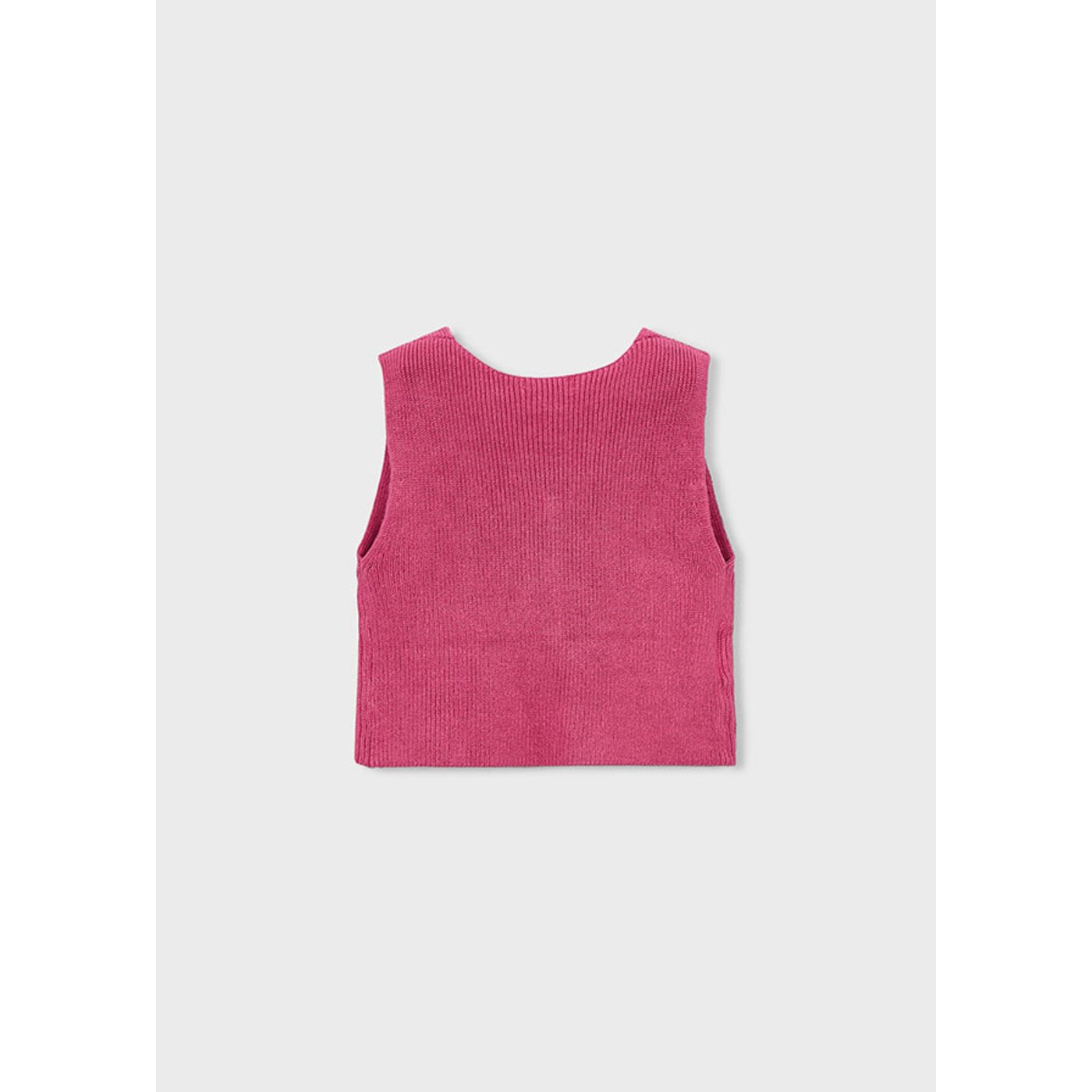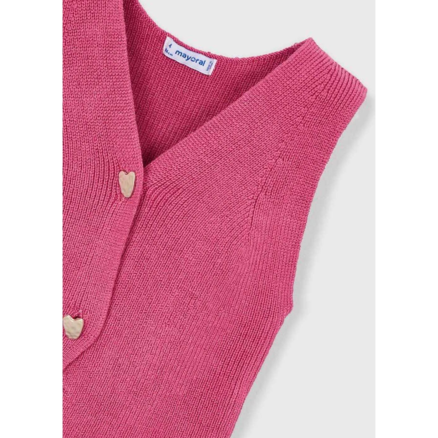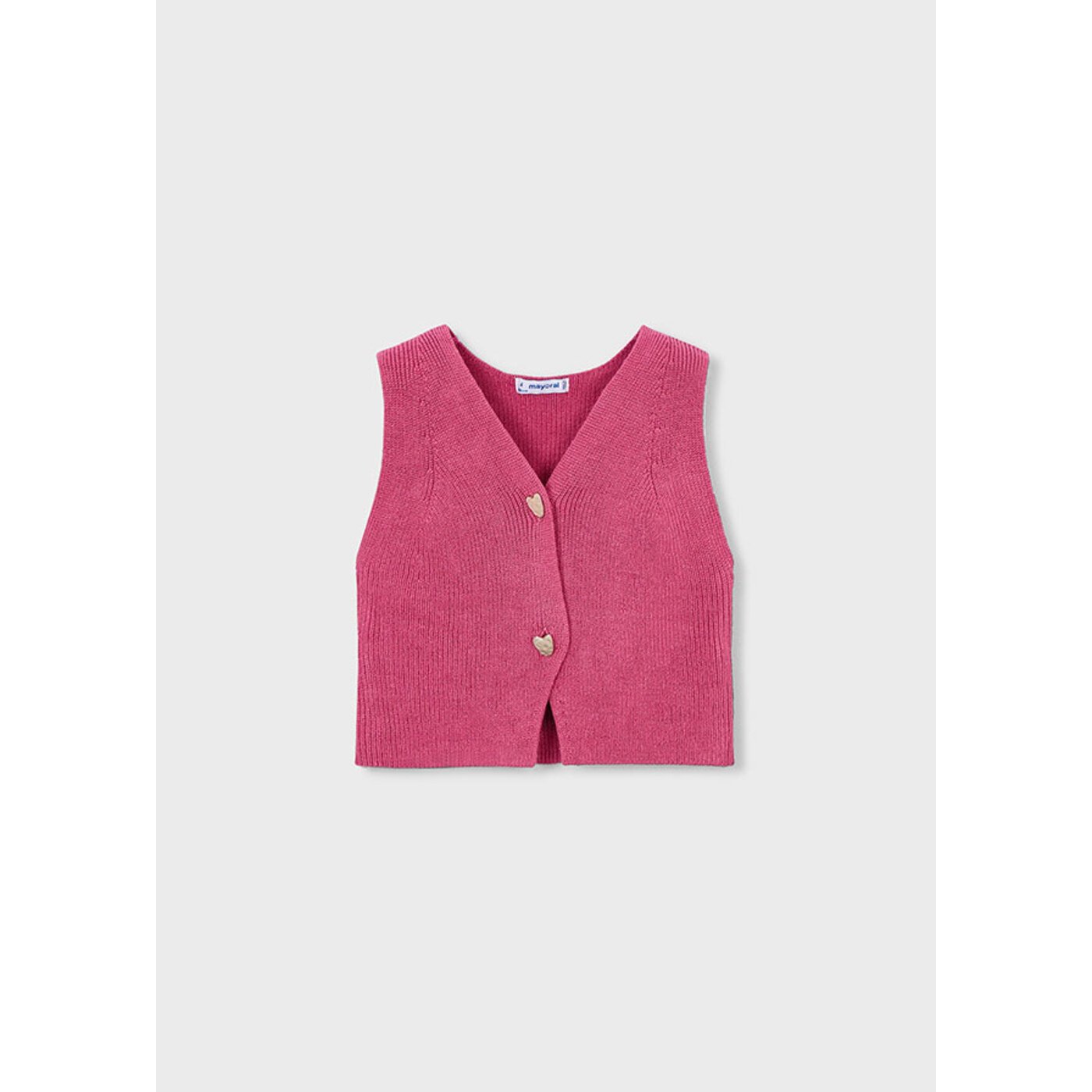 Трикотажный жилет с застежкой на пуговицы. Пуговицы в виде сердец.